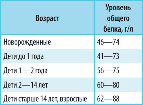 Нормальное количество общего белка зависит от возраста, и это не удивительно, ведь чем младше ребенок, тем активнее обмен веществ, тем больше белка требуется растущим органам и тканям, тем меньше белка в сыворотке крови. Аналогичная ситуация имеет место и при беременности: интенсивный рост плода сопровождается снижением уровня общего белка в крови у матери.