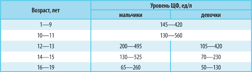 Интенсивный рост костной ткани обусловливает тот факт, что активность щелочной фосфатазы у детей выше, чем у взрослых.