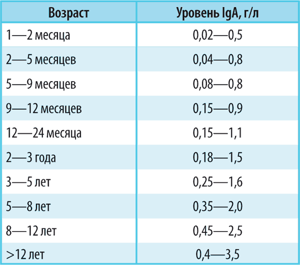 У новорожденного нет собственного IgA, он получает его от матери с молоком. Выработка собственного IgA начинается примерно в возрасте 4 месяцев и становится сопоставимой с выработкой IgA у взрослого лишь к 4 годам! Именно материнский IgA, получаемый с молозивом и молоком, защищает дыхательные пути и желудочно-кишечный тракт ребенка от инфекций.