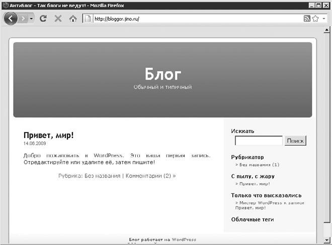 Рис. 1.4. Автономный блог на WordPress