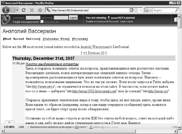Рис. 1.6. Блог Анатолия Вассермана