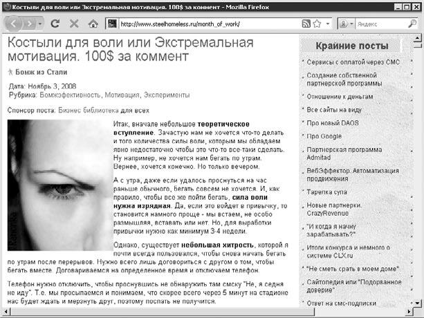 Блог – отличный инструмент мотивации. Когда блогер заявляет всей аудитории, что собирается чего-либо достичь, то получает серьезную поддержку и чувствует ответственность перед читателями. Этого более чем достаточно, чтобы не потерять интерес и не отступить на пути достижения цели (рис. 1.7).