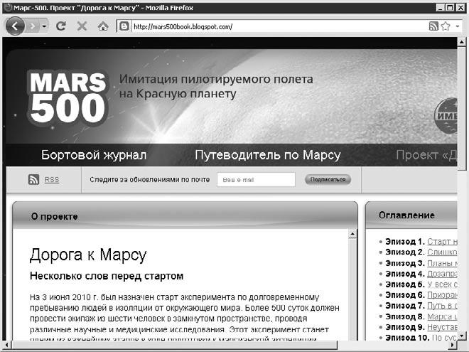 С помощью блога можно даже полететь на Марс! Проект «Марс-500» – лучшее тому доказательство (http://mars500book.blogspot.com/).