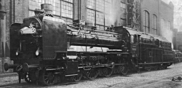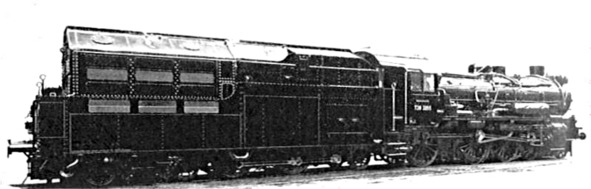 Паровоз завода Henschel с турбинным бустером на тендере. Использование мятого пара поршневых машин для турбин низкого давления до некоторых пор считалось сложным и практически трудноосуществимым, но позднее французская фирма Rateau применила этот метод для модернизации устаревших паромашинных установок14.