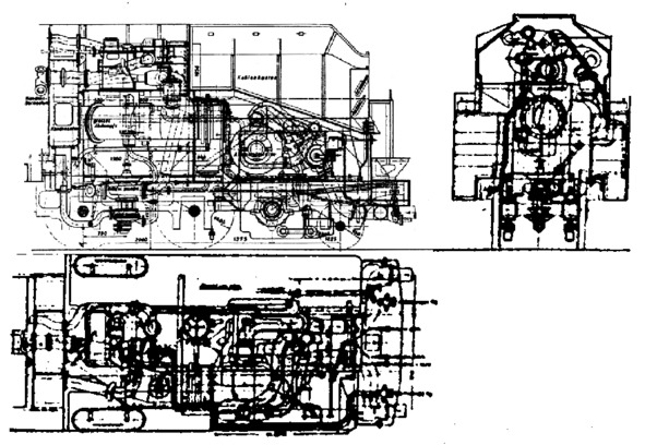 Мощность вентиляторной установки в турболокомотиве Юнгстрем Байер около 300 л.с., в то время как у турболокомотива Маффей постройки 1924 г. при оросительном обратном холодильнике она равна ~30 л.с. Примечание А. А. Чиркова.