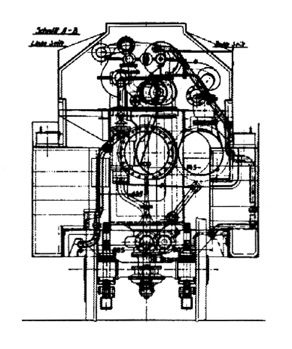 Поперечное сечение передней части турбинного тендера Т38. Рисунок с сайта «The Self Site: Unusual Steam Locomotives».