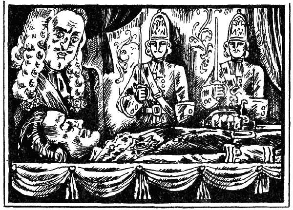 Кому из собравшихся неведомо было, что, вопреки льстивым глаголам столь угодливого архиепископа, Екатерина не была названа царем Петром его преемницей, а восшествие ее на престол воспоследовало далеко не правым образом. Каково самому Петру слушать такое?.. Хотя и мертвый лежит, а слышит, о чем говорят, и будет слышать до той самой минуты, покуда его земле не предадут. Приподняться бы ему да крикнуть: «Чего врешь, кудлатый!.. Так сладкоречиво по-соловьиному заливаешься, а перед кем?.. У нее, подлой, столько лет Вилим Монс в амурной близости был».