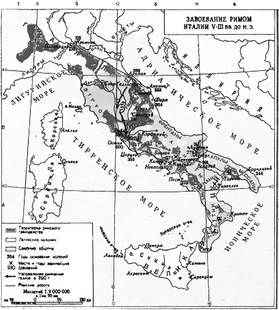 Здесь важно понимать, что к III веку до нашей эры римское государство представляло собой объединение части территорий «римского сапога» вокруг Рима с вкраплениями дружественных племён (см. карту).