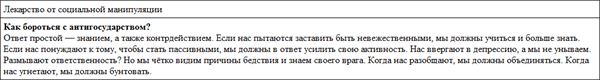 Другими словами, перед человеком в современном во многом враждебном, лицемерном и обманном по отношению к простому человеку обществе, где несогласных и честных либо «покупают», либо угнетают и даже уничтожают, встаёт проблема борьбы с антигосударством.