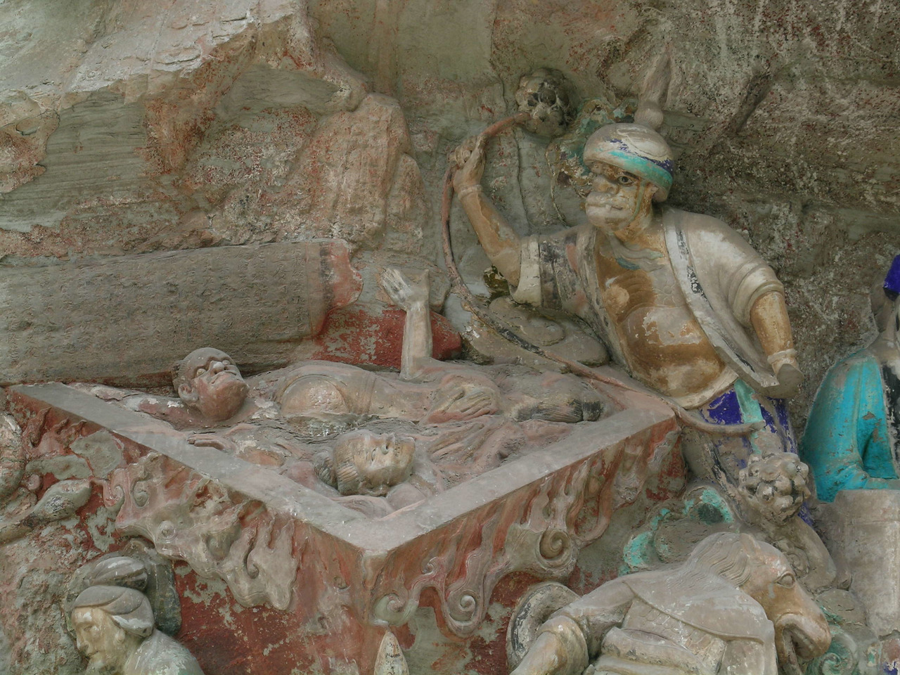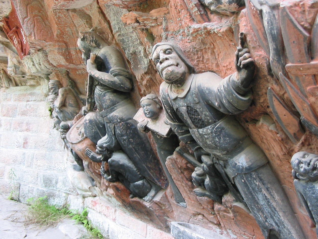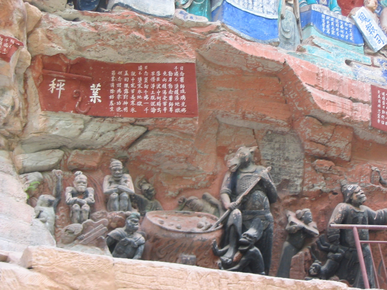 Статуи изображали, в основном, традиционные буддийские и даосские персонажи, среди которых особенно запомнились изображения обитателей ада. Фигуры грешников и мучающих их демонов были высечены и раскрашены с таким мастерством, что поневоле приходила мысль о вероятности весьма близкого знакомства авторов и с теми, и с другими. С учетом жары впечатление от адских персонажей было особенно сильным.