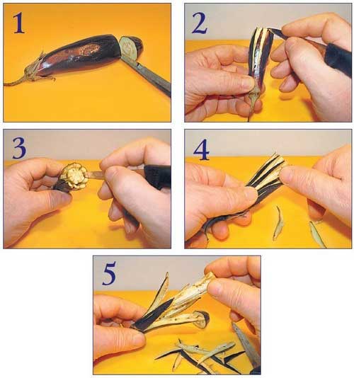 2. Наносим рисунок и прорезаем его в глубину, тонко срезаем цветок