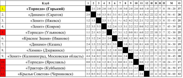 – «Трактор» (Куйбышев) покинул розыгрыш Чемпионата СССР навсегда и во всесоюзных соревнованиях не участвовала.