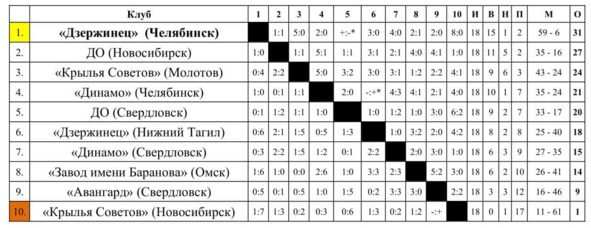* Счёт матча «Дзержинец» (Челябинск) – ДО (Свердловск) 0:0 аннулирован. ОДО (Свердловск) засчитано поражение.