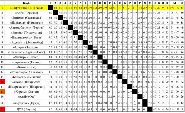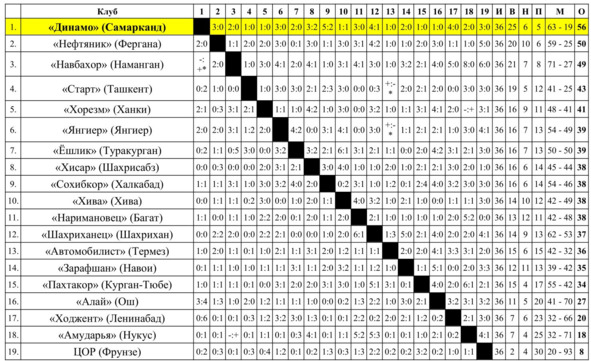 *Матч «Навбахор» (Наманган) – «Динамо» (Самарканд) закончился со счётом 1:0, но хозяевам засчитано техническое поражение.
