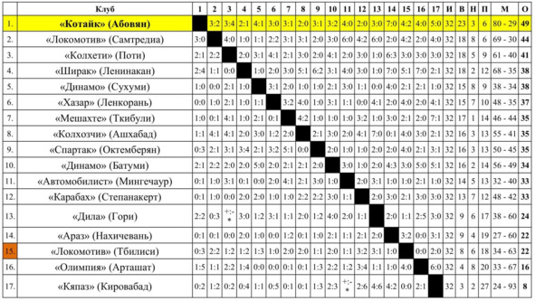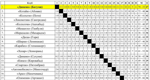 – Высшую лигу покинули «Торпедо» (Кутаиси) и «Нистру» (Кишинёв).