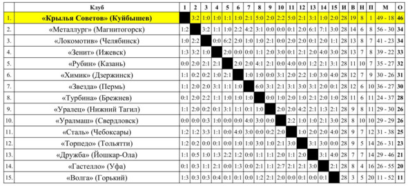 – Команда «Крылья Советов» (Куйбышев) вышла в финальные стыковые матчи Второй лиги.