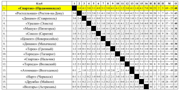 – Команда «Спартак» (Орджоникидзе) вышла в финальные стыковые матчи Второй лиги.