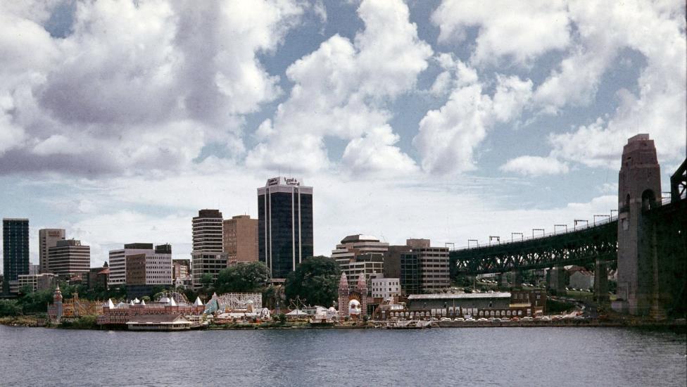 Порт Сидней. На переднем плане Луна-парк. Справа знаменитый мост Harbor Bridge и наша стоянка