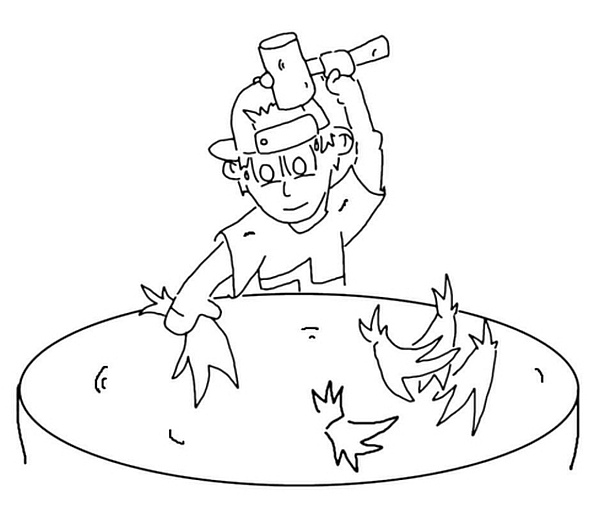 Тем временем прошло необходимое количество времени, и дядюшка, вычерпнув ситом хвостики из кастрюли, промыл их под струёй воды и разложил на доске. Затем он дал Максу деревянный молоточек: