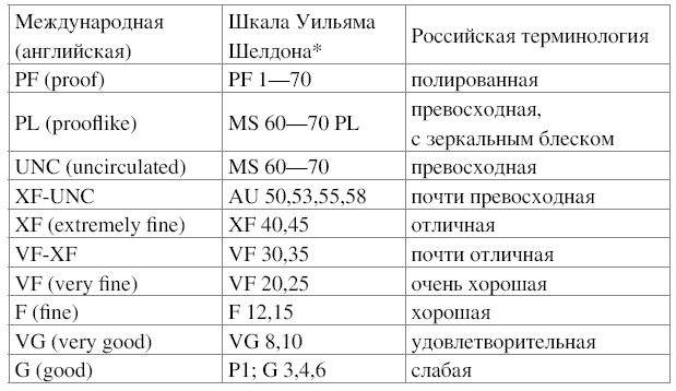 Сохранность – состояние монеты, определяемое по внешнему виду на основе оценочной шкалы. Международные оценочные шкалы, используемые различными грейдинговыми фирмами, весьма отличаются друг от друга.