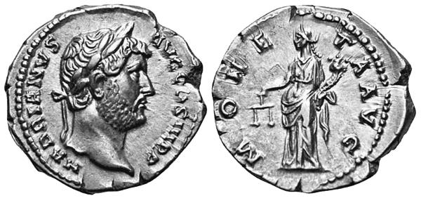 Встречались и другие изображения Юноны Монеты. Например, подчёркивалось, что богиня стала персонификацией римского монетного двора, её изображение чеканилось с такими атрибутами, как весы и рог изобилия, например на денарии Адриана (Публий Элий Траян Адриян, 76—138 н. э.). А, к примеру, при Максимиане (Марк Аврелий Валерий Максимиан Геркулий, 250–310 н. э.) и при Галерии (Гай Галерий Валерий Максимиан, ок. 250–311 н. э.) на реверсах изображали по три стоящих над грудами монет Юноны Монеты – каждая с весами и рогом изобилия. Это символы чеканки монет из золота, серебра и бронзы.