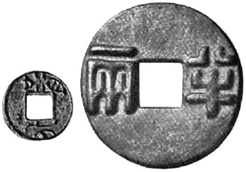 То есть со всеми допущениями можно сказать, что монеты в Китае появились примерно в одно время или чуть позже первых монет Лидии и Ионии. Скорее всего, в самом конце периода Чуньцю («Весны и осени»), ближе к 481 году до н. э., и в течение периода Чжаньго («Сражающихся царств») – 480–221 годы до н. э. Развивалось монетное обращение Китая в эпоху династии Цинь (221–205 годы до н. э.) и династии Хань (205 год до н. э. – 220 год н. э.).