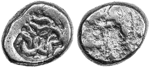 После некоторой передышки стычки продолжились, опять не в пользу Эгины. Но нас интересует не столько это, сколько факт потери эгинского флота в середине V века до н. э. Однозначно именно с этим связана замена черепахи на монетах. Эгина перестала быть морской державой, её удел с того момента – держаться на суше. А уж кто был инициатором – взявшие верх Афины или огорчённая морским поражением и выражающая своеобразный протест Эгина, – в документах той эпохи не отражено.