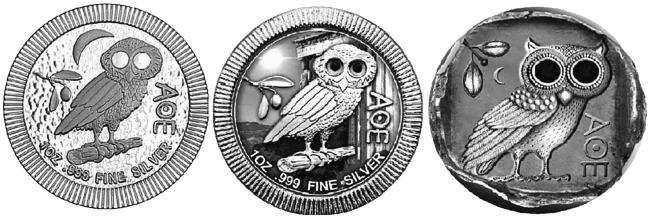 В последние годы наблюдается новый всплеск интереса к «Сове Афины»: от имени государств Ниуэ, Фиджи, выпущено уже несколько десятков серебряных и золотых монет, на аверсах которых интерпретации «совиного» сюжета в различных бесцветных и цветовых решениях, с разнообразными эффектными вставками в глаза птицы. Так что, учитывая потенциальное количество предметов, как древних, так и современных, можно при желании всю жизнь одних «сов» собирать. И не надоест!