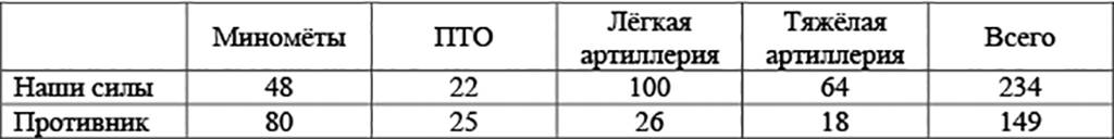 Соотношение сил артиллерии на направлении главного удара следующее: