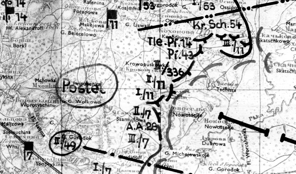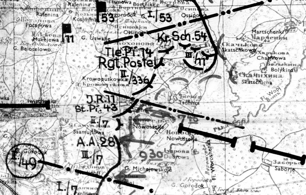 На стыке 14-й (моторизованной) и 28-й дивизий русские атаковали сильно сосредоточенными силами при чрезвычайно сильной артиллерийской поддержке и добились сильного прорыва между Чистой и Новосельем.