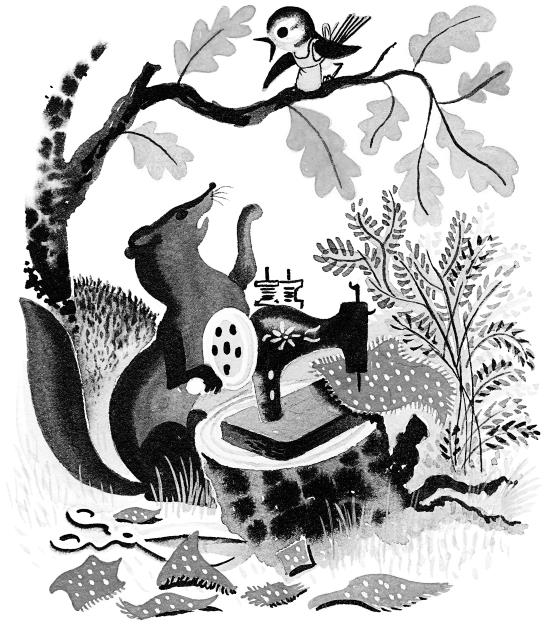 – Да что ты, да что ты! – успокаивает она его, а сама к заячьей шубке приглядывается, с молодым Бурундуком весёлые разговоры заводит, о здоровье у старого Барсука спрашивает.
