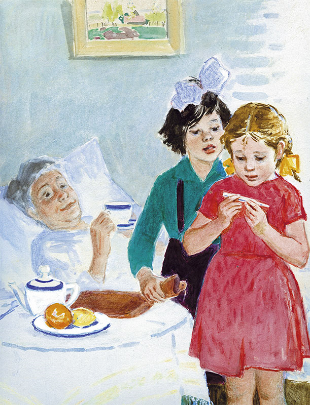 И так они её принялись лечить, что бедной Вере Михайловне даже соснуть было некогда. Через каждые полчаса температуру измеряют. Киселём кормят… Воду подают.