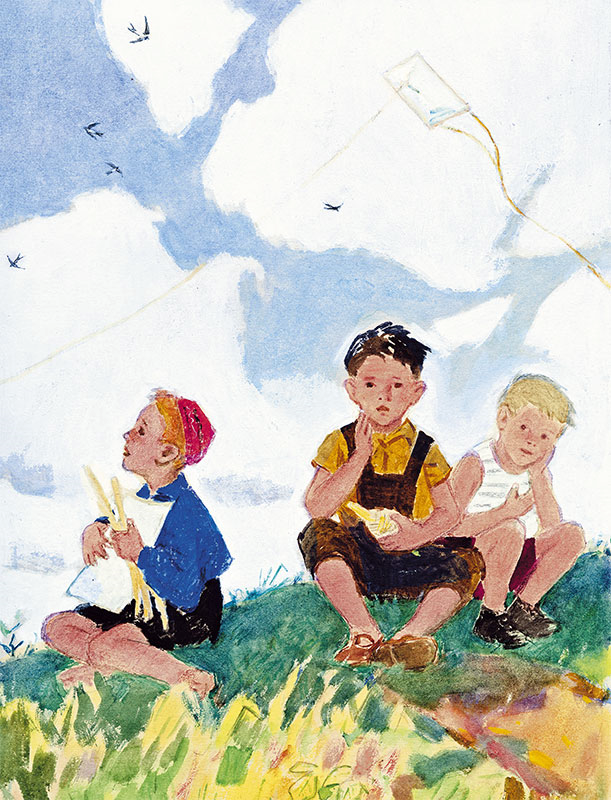 А у Сёмы большой моток ниток был. Ему есть на чём змея пускать. Ему бы лист бумаги да мочала на хвост достать, тоже бы своего змея запустил.