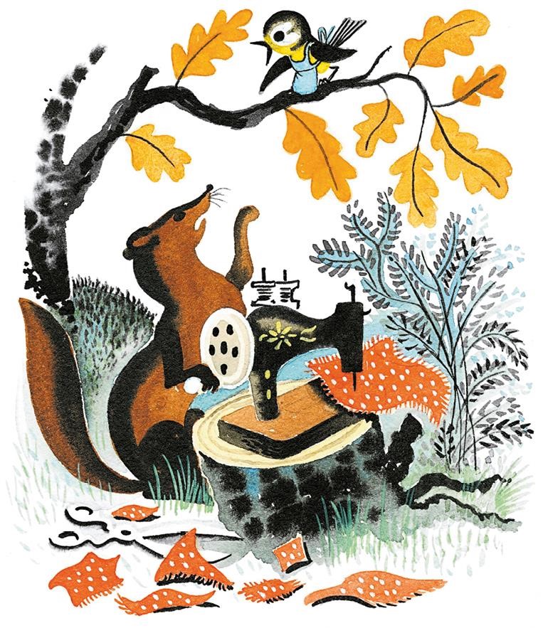 – Да что ты, да что ты! – успокаивает она его, а сама к заячьей шубке приглядывается, с молодым Бурундуком весёлые разговоры заводит, о здоровье у старого Барсука спрашивает.