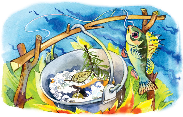– Оттого наша уха вкусна, что Юра большущего ерша поймал. Потому наша уха жирна да навариста, что ершище жирнее сома.