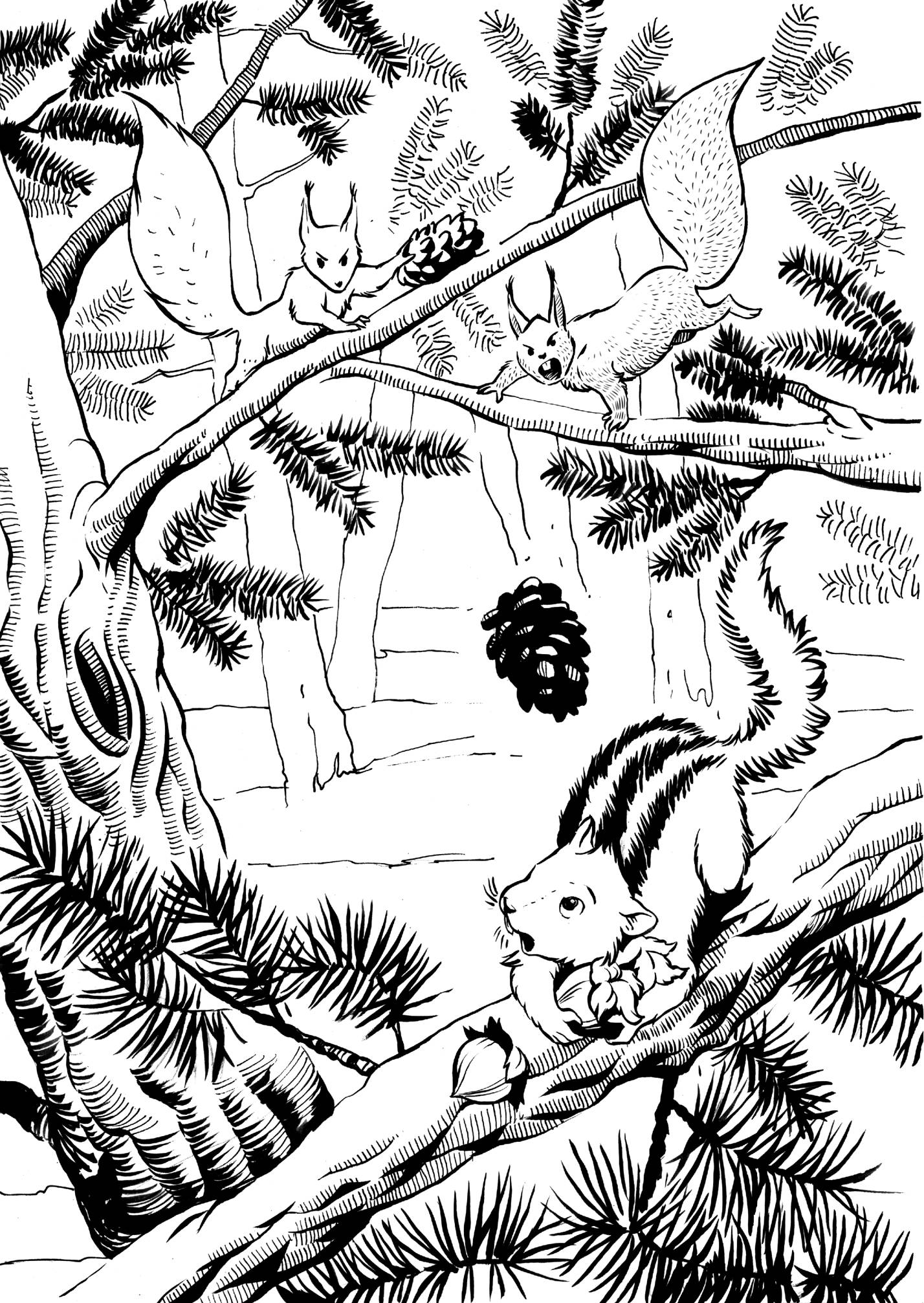 – Ну-у что же ты-ы испугался? Здесь тебе бу-удет лу-учше. Беги-и! – Великан явно не понимал, где живут бурундуки.