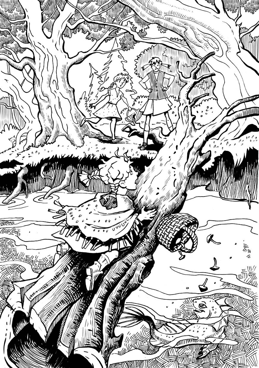 Арика попыталась идти дальше, но уверенность словно ветром сдуло. Страх своими холодными щупальцами пополз по спине. Теперь девочка чувствовала каждое малюсенькое движение бревна. Как оно дрожит и пляшет под ногами, как скользят грязные башмаки по гладкому стволу. Внезапно дерево оказалось покрыто несметным количеством сучков, и стопы почему-то цеплялись за каждый.
