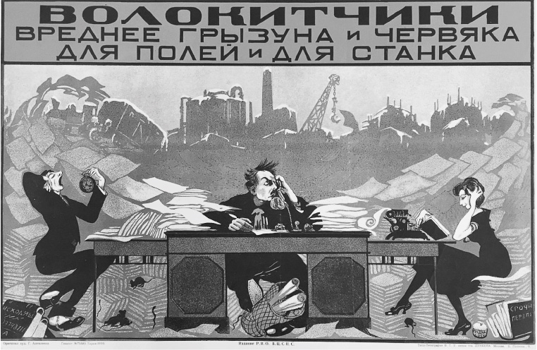 Георгий Алексеев. Плакат «Волокитчики вреднее грызуна и червяка для полей и для станка». 1927 год[49]