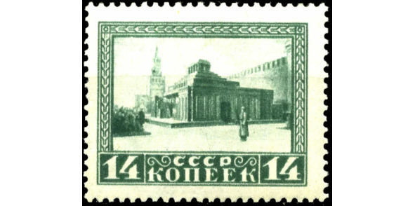 Почтовым ведомством подготовляются ко дню годовщины тов. Ленина новые почтовые марки с изображением мавзолея.