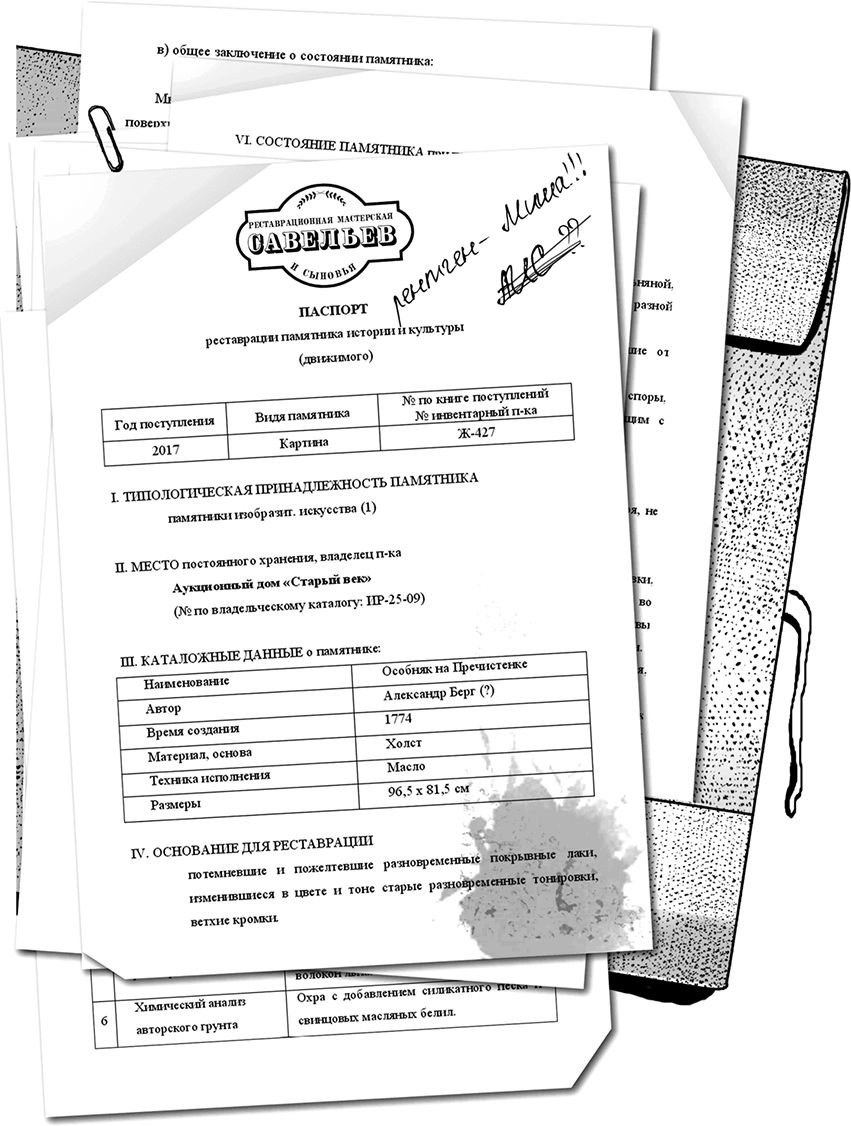 Максиму пришлось вновь повозиться с тугой защёлкой бардачка. Бросив в него каталог, он достал из-под счетов синюю папку. В ней лежал реставрационный паспорт – скреплённые степлером листы, в которых рассказывалось о реставрации «Особняка на Пречистенке».