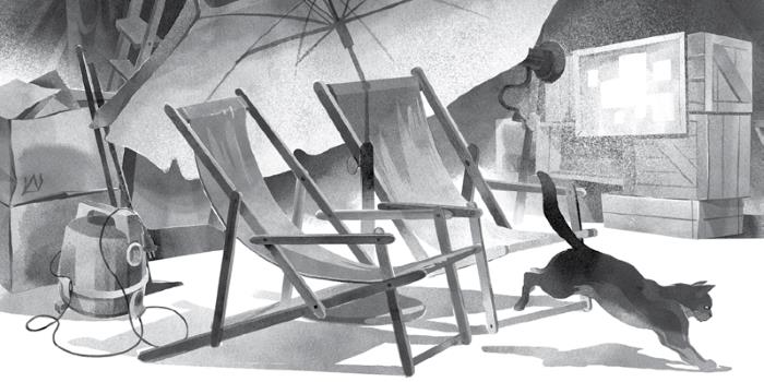 На следующий день мы обустроили штаб-квартиру Раздвинули коробки и ящики, отыскали два пляжных стула, купленные бабушкой на распродаже и давно ею забытые – когда я спросила, можно ли ими воспользоваться, бабушка удивилась и сказала, что ещё не выжила из ума и складных стульев не покупала. О пляжном зонтике и наборе просроченных кремов от загара, которые Настя отыскала следом, я упоминать не стала. Папа помог Гаммеру затащить по шаткой лестнице журнальный столик, пожертвовал торшер, две лампы-прищепки и одну из своих пробковых досок, затем подключил нам миниатюрный роутер.