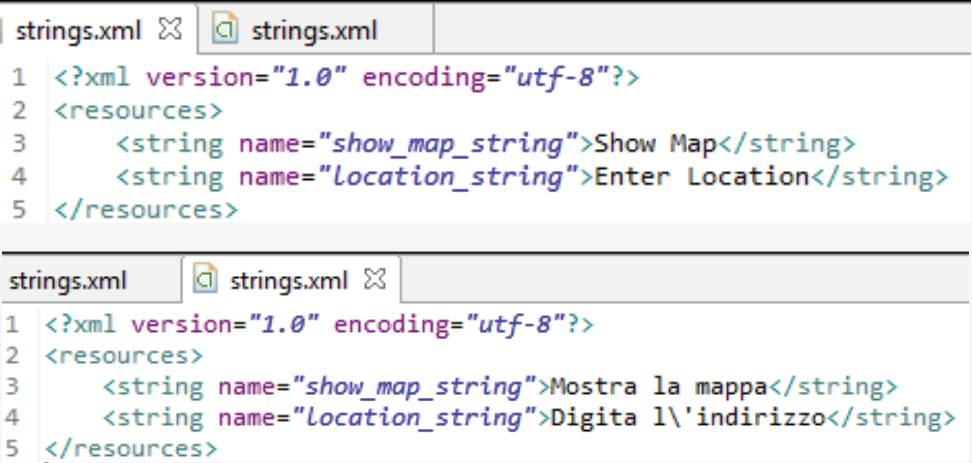 Наконец, другие файлы ресурсов могут ссылаться на строки, которые вы определили как @string/string_name. Вы также можете получить доступ к этим строкам из java-кода, но на этот раз вы делаете это так: R.string.string_name.