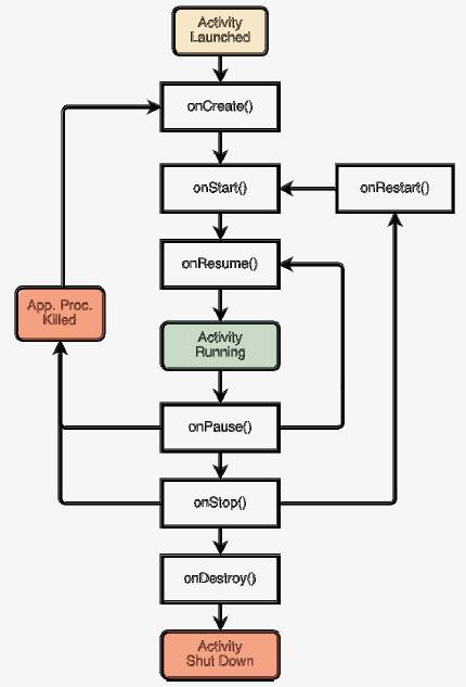Затем Android вызовет свой метод onStart, и затем onResume, после которого пользовательский интерфейс Activity появится на экране устройства, и пользователь сможет взаимодействовать с ним.