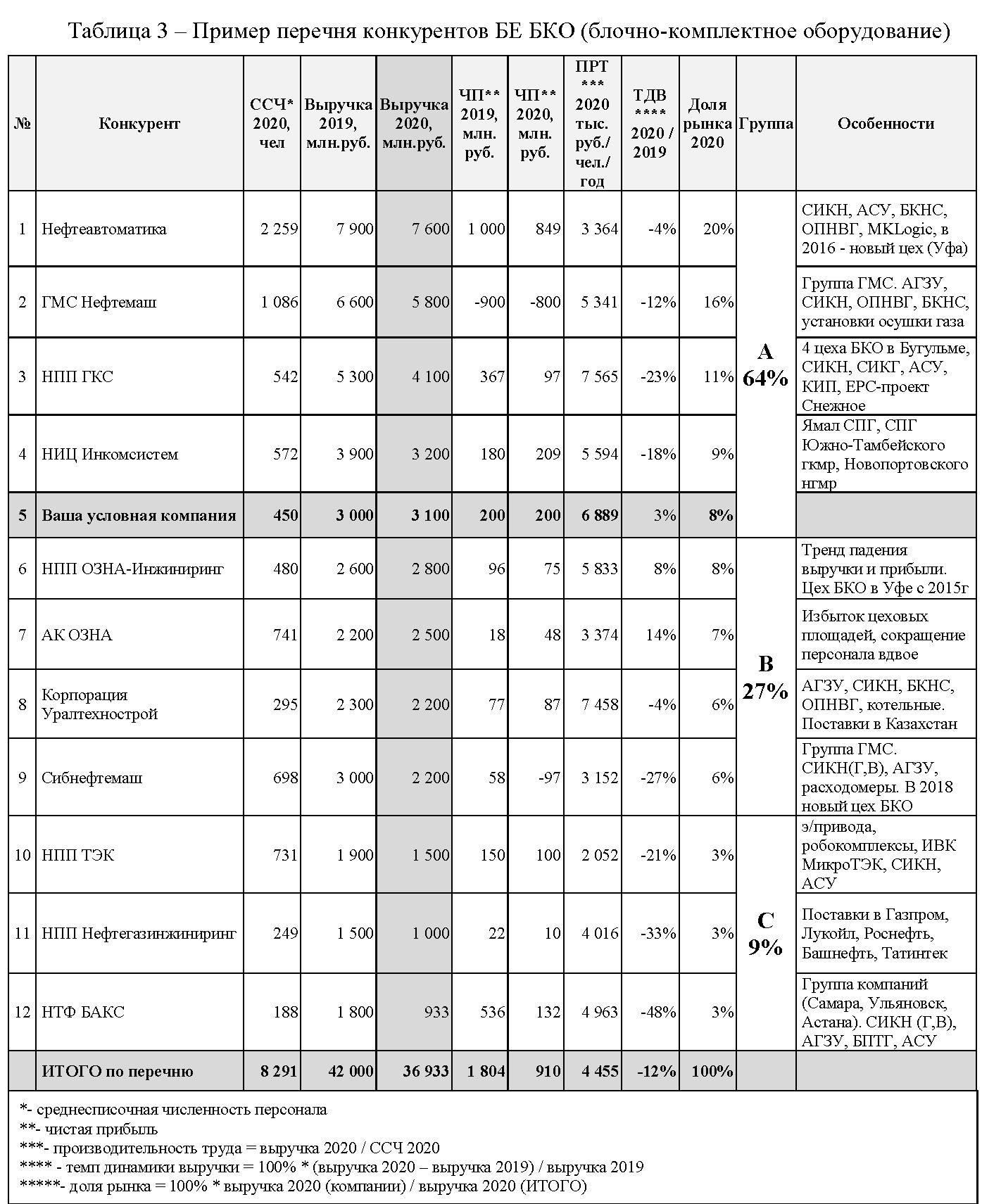 Приведенный в этом разделе оригинальный формат анализа конкурентов проще и достовернее инструментов, перечисленных выше. Аналогов применения инструмента в производственных компаниях РФ автор пока не встречал.
