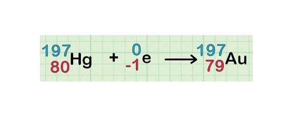 Если взять ядро ртути и удалить из него один протон, ну или превратить его, например, в нейтрон, то получится ядро золота. Схема такая