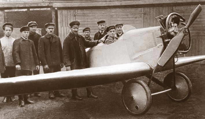 Авиаконструктор Андрей Николаевич Туполев у своего первого самолета (5-й слева)