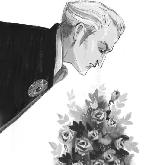 Человек (отворачивается от детей, разглядывает розы в лорнет). Ага. Действительно ли это живые розы? (Нюхает.) А) издают запах, свойственный этому растению, б) обладают соответствующей раскраской и, наконец, в) растут из подобающей почвы. Живые розы. Ха!