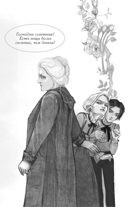 Сказочник. Здравствуйте, бабушка! Здравствуйте, дети! Вас огорчил коммерции советник? Не обращайте на него внимания. Что он нам может сделать? Смотрите, как весело розы кивают нам головками. Они хотят сказать нам: всё идет хорошо. Мы с вами, вы с нами – и все мы вместе.
