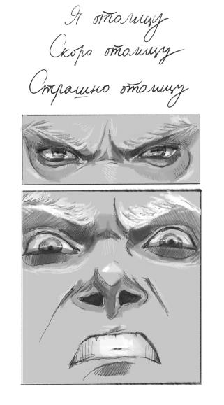 Человек двигается прямо на детей, которые в ужасе отступают.