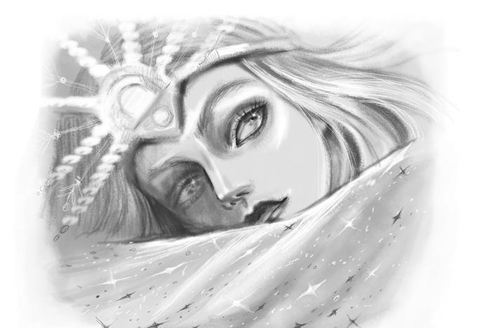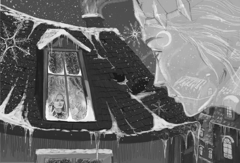 Сказочник. Летом – далеко-далеко, на севере. А зимой она летает на черном облаке высоко-высоко в небе. Только поздно – поздно ночью, когда все спят, она проносится по улицам города и взглядывает на окна, и тогда стекла покрываются ледяными узорами и цветами.